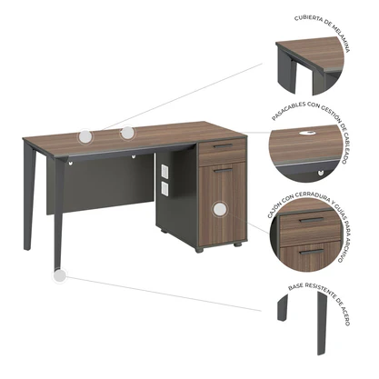 - Construcción robusta la combinación de melamina ECO E1 y patas de acero aseguran un escritorio que resistirá el paso del tiempo y el uso diario.