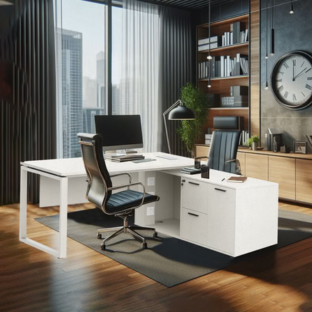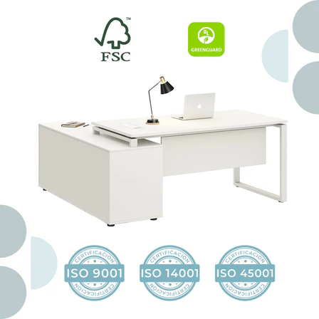 El Escritorio Ejecutivo Zadar es una elección acertada para profesionales que buscan un espacio de trabajo amplio y eficiente. Este escritorio está construido con un tablero de partículas de grado ECO E1, un material que no solo garantiza robustez y durabilidad, sino que también refleja un compromiso con prácticas sostenibles y respetuosas con el medio ambiente.