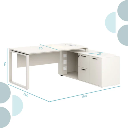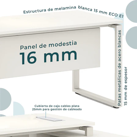 - Gestión de cables integrada tablero superior de 25 mm con cubierta abatible para cables, manteniendo el área de trabajo ordenada y libre de desorden.