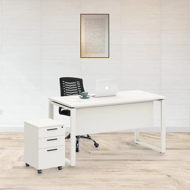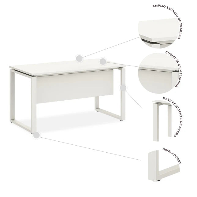 - Escritorio Grande: Espacio Amplio de Trabajo Escritorio blanco ejecutivo Zadar, con amplias dimensiones de 160 x 140 x 75 cm, perfecto para un espacio de trabajo eficiente y organizado.