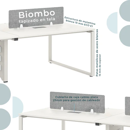 - Escritorio minimalista: Gestión integrada de cables cuenta con tableros superiores de 25 mm con cubiertas de caja de cables abatibles para mantener la organización y limpieza del área de trabajo.