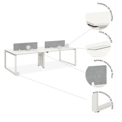 - Mesa Escritorio: Estructura robusta patas de acero en forma de anillo con recubrimiento en polvo y un grosor de pared de 1.5 mm para una estabilidad excepcional.