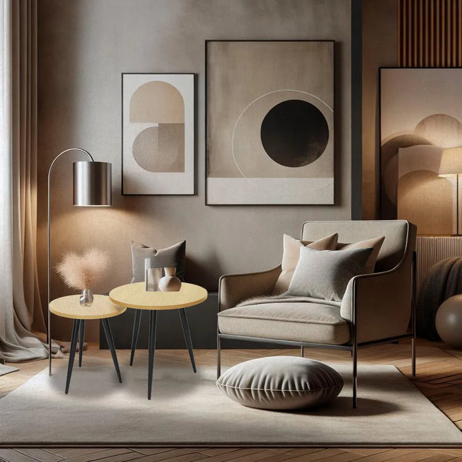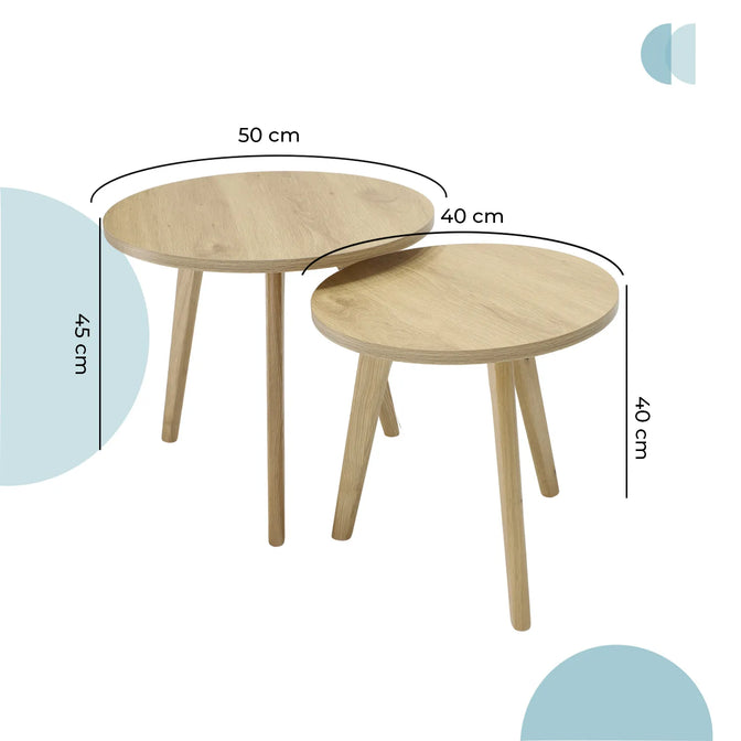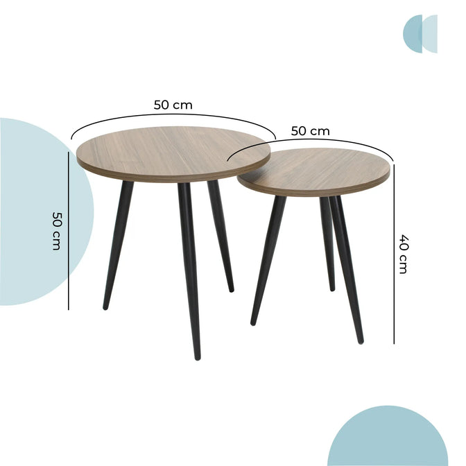 - SET DE MESAS LATERALES FUNCIONALES: Juego de 2 mesas redondas en tamaños complementarios (50x50 cm y 40x45 cm) ideales para salas, oficinas o áreas de descanso.