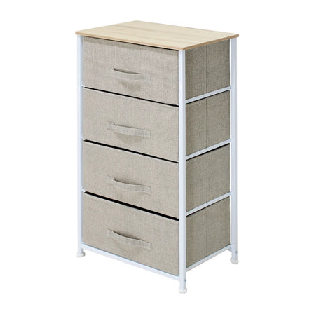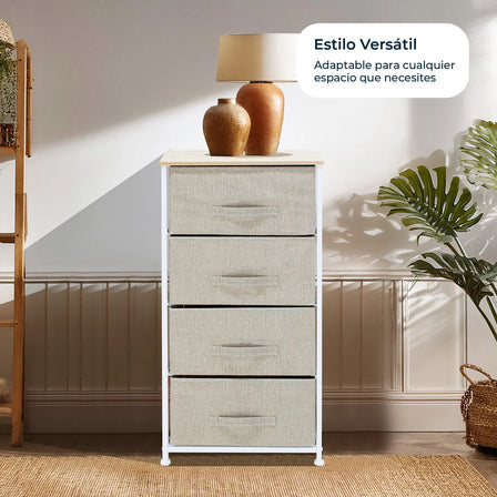 - DISEÑO MODERNO Y FUNCIONAL: La cajonera Carintia de con 4 cajones combina tela no tejida y una estructura de acero, ofreciendo estilo y practicidad.
