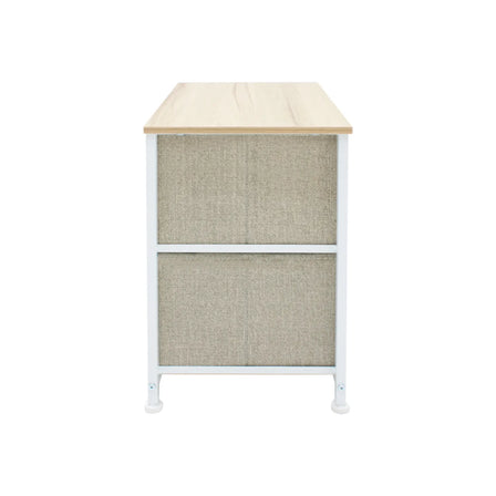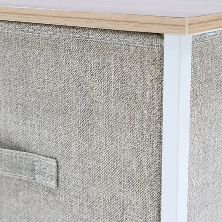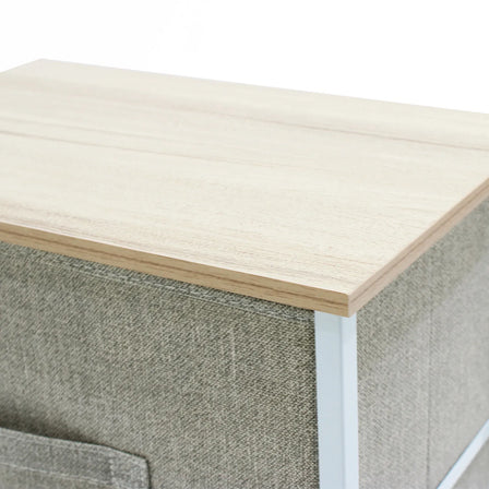 - DISEÑO FUNCIONAL Y ELEGANTE: El buró Carintia de con 2 cajones combina tela no tejida y una estructura de acero, ideal para complementar cualquier espacio.