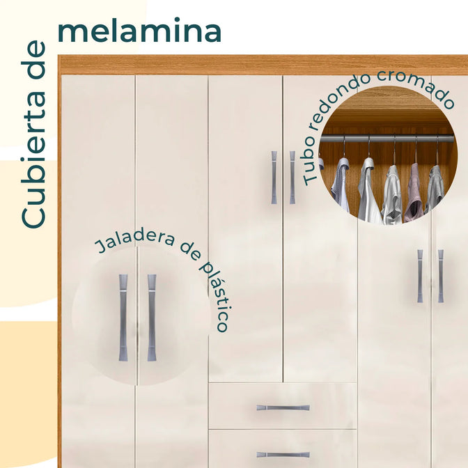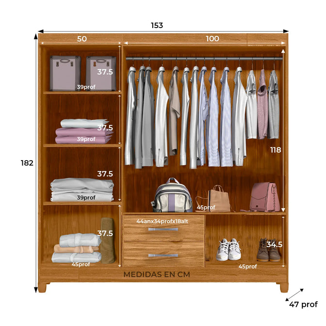 - Amplio espacio de almacenamiento: incluye estantes, cajones y una barra para colgar prendas, ofreciendo una organización eficiente y versátil.