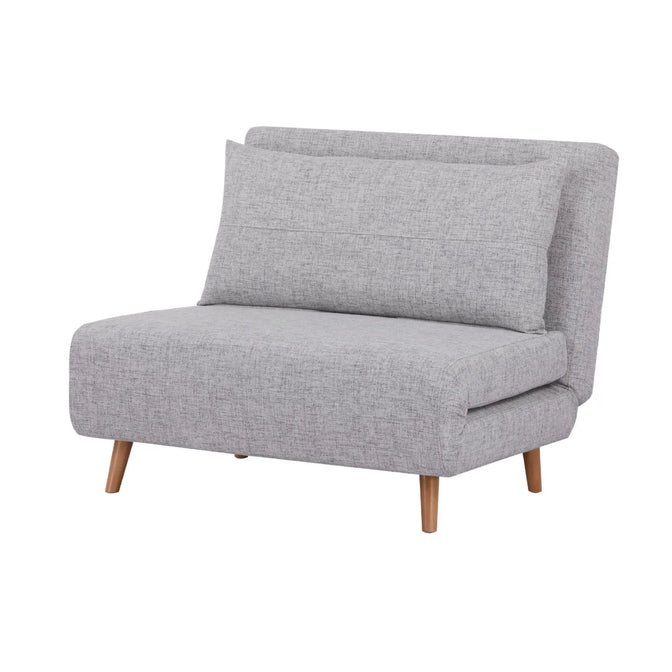 - ASIENTO Y RESPALDO ACOLCHADOS: Equipado con un asiento y respaldo acolchados en tela gris de alta calidad que garantizan comodidad tanto en modo sofá como en cama.